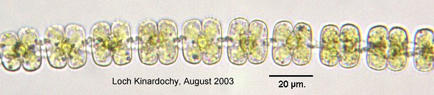 Filamentous desmids: many look like Cosmarium cells linked end-to-end
